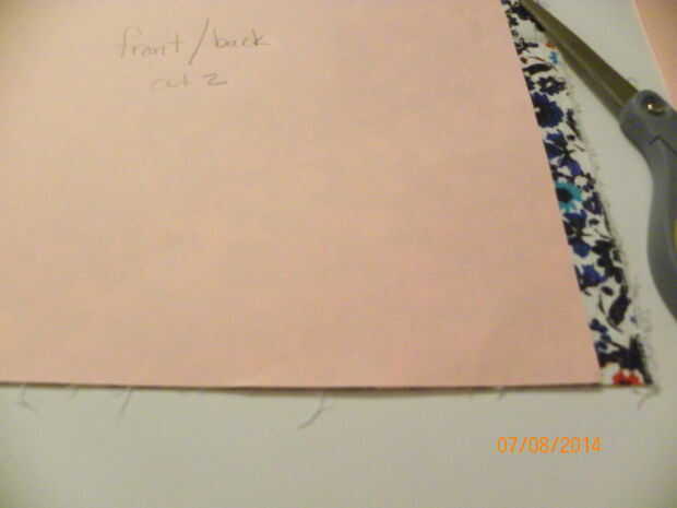 1. el cuerpo principal de la bolsa es de aproximadamente 1 pie por 1 pie. Asegúrese de marcar cada pieza. Escriba "cortar dos" (frente y la parte trasera del bolso) en esta pieza.