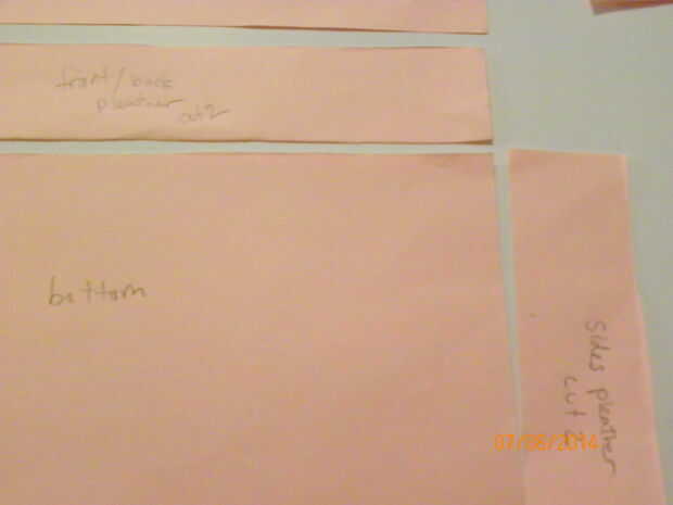3. para las piezas de piel artificial en los bordes hará 1 pie por alrededor de tres pulgadas. Marca "cortar dos" esta pieza.