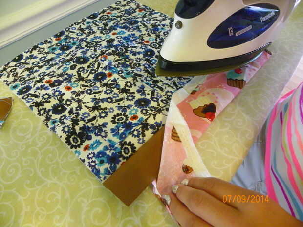 Con temp de hierro en posición baja y un trozo de algodón sobre ella, los paneles de hierro. La piel artificial es de plástico y se derretirá. Es por eso que estoy usando la tela de algodón.