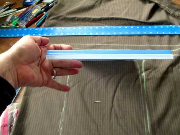 La tela debe tener idealmente un wee poco de tramo a él, pero no demasiado. No recomendaría material de camiseta, tiende a estirarse demasiado y en muchas direcciones y no tiene fuerza suficiente. Elegí un vestido ligero y ligeramente elástico pantalón y chaqueta de un viejo caballero para este proyecto. Dril de algodón está bien, pero se pondrá muy difícil a coser como las capas se acumulan.