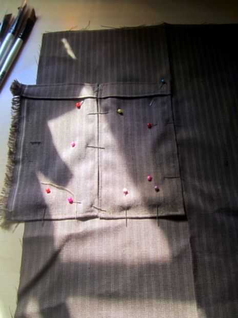 Sus bolsillos acabados de la envolvente según el diseño que ideó antes del perno.