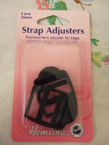 -Ajustador de la correa. He encontrado mina en sección de mercería de John Lewis. Medir el ancho de la correa antes de comprar.