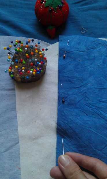 Ahora tome sus 2 piezas superior derecho lados juntos Inserte a finn, pin y coser a lo largo de y fijar cosiendo a lo largo de ambos lados una vez más con la puntada deseada.
