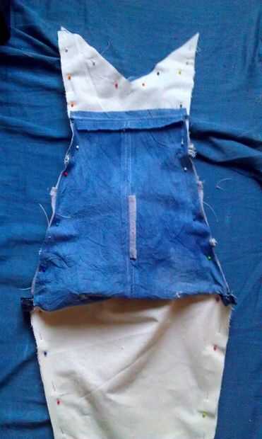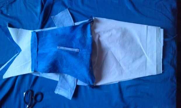 así que cuando se cose todo alrededor, ahora a tu mochila tiburón derecho contra derecho hacia fuera a través de la parte inferior del forro abierto.