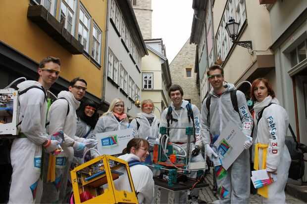 Primero nos fijamos en cómo montar unas correas de mochila sin dañar su Ultimaker y luego veremos en la electrónica que se necesita para alimentar autónomamente. Para que usted consiga motivación comenzamos con una ronda de fotos de EuroMold y FabCon donde usé esta configuración para atraer bastante atención: