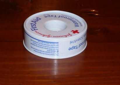 Usé cinta médica que tenía en mi botiquín de primeros auxilios. Si usted tiene un fabricante de etiqueta que sería genial también.