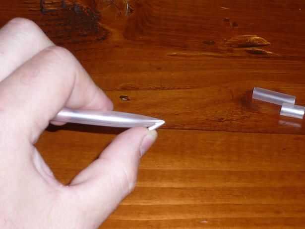 2. Pellizque esta sección y en Inserte completamente a la 1" pedazo de paja cortada. (esto será la tapa del paquete)