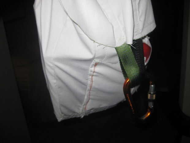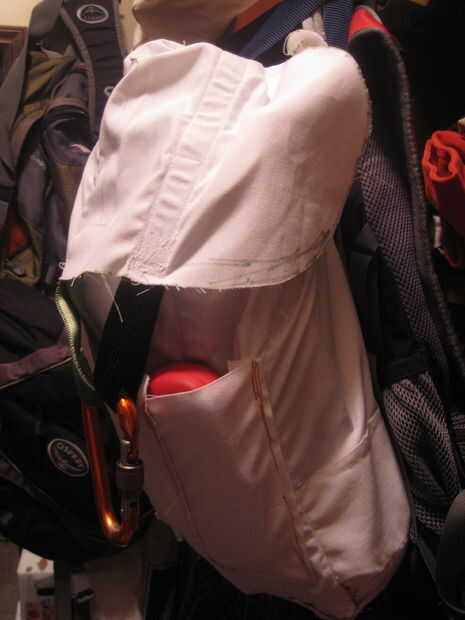 se trata de un bolsillo oculto que puede poner cosas valiosas en si usted está preocupado acerca de personas robar cosas de la mochila.Lo hice esto incluye costura. Se pueden usar pernos de seguridad en su lugar aunque.Y por favor no utilice esta par