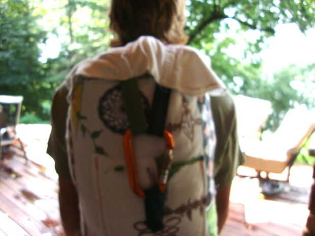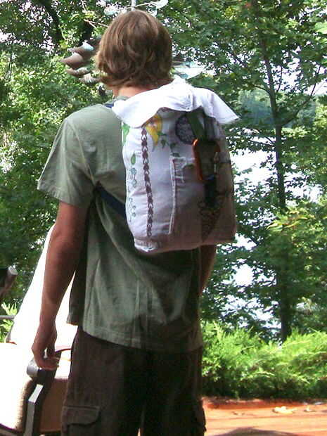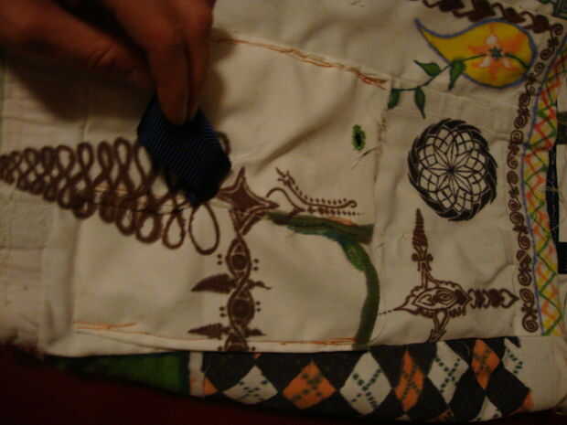 se trata de un bolsillo oculto que puede poner cosas valiosas en si usted está preocupado acerca de personas robar cosas de la mochila.Lo hice esto incluye costura. Se pueden usar pernos de seguridad en su lugar aunque.Y por favor no utilice esta par