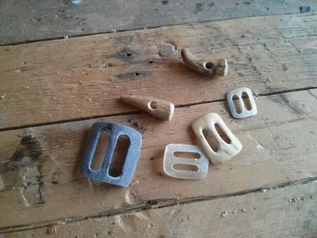 Crear tus propio hebillas no es terriblemente difícil, y si hay interés, crearé un instructable sobre ella en el futuro. Para empezar, no necesitas el pin como en hebillas modernas. Tradicionalmente, la cinta se teje a través de las hebillas, según normal, sin embargo extra longitud queda en él para que envuelve la correa en un enganche de media que deja de deslizarse. Es por ello que ves en las imágenes de la edad media que a menudo tienen la cola de sus correas colgando hacia abajo.