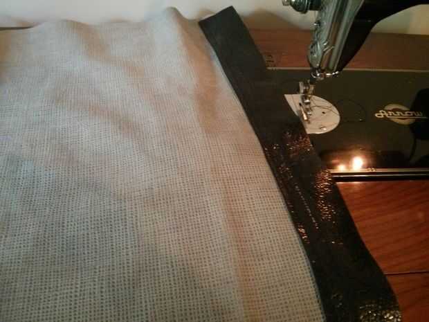 Ahora con su bolsa de adentro hacia afuera, necesita coser un labio 1" en la parte superior de la bolsa. Esto reforzará la apertura y darle un lugar para montar sus anillos de lazo.
