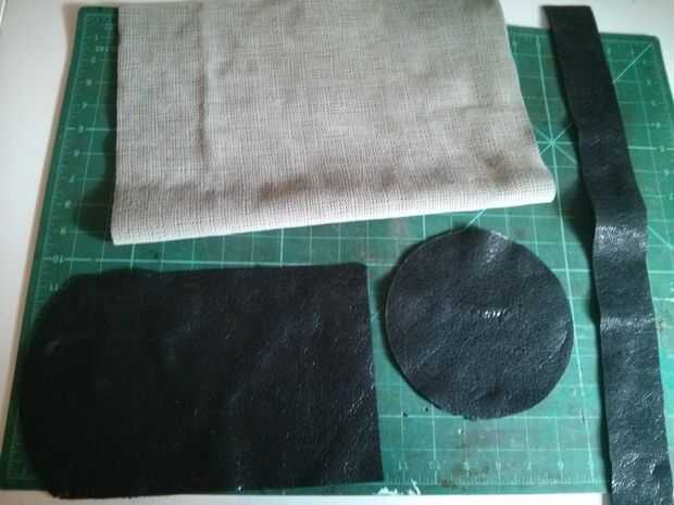 El cuerpo de la mochila consiste en cuatro partes, un pedazo más grande de 20 "x 15" de cuero, una tira de refuerzo angosto 2 "x 20", una circular 6" pieza de la base y una solapa de 6" x 8". Este diseño es para una mochila más pequeña que es útil para el día de disparo o como un transporte de propósito general. Puede aumentar el tamaño como parezca.