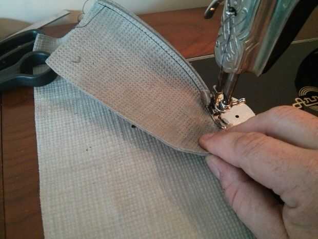 Primero necesita fijar la tapa al cuerpo principal. Sólo se necesita ser solo cosidos y montados con una superposición de 1/2". Siguiente, a partir en el extremo opuesto de la aleta empezar fijar los lados del cuerpo. Al llegar a donde rondas, recomiendo encender la máquina de coser a mano. Mantenga el reajuste la costura levantando el pie, reunir los bordes después bajándolo para sostenerla en lugar. Asegúrese de la aguja está abajo a través del material antes de levantar el pie.