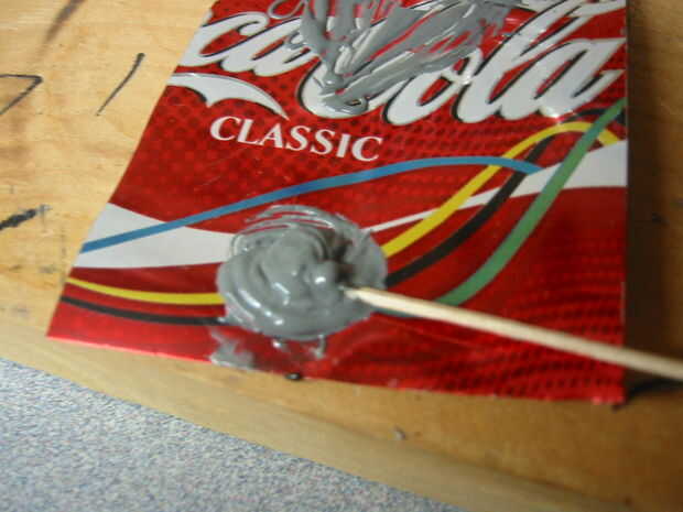 Mezcla hasta otro lote de JB Weld, y antes de ir pegando cualquier rayos a la estufa, se usa para rellenar todos los agujeros pequeños en la parte superior de la estufa, tanto en los círculos interiores y exteriores. Luego pégalos radios allí, em deje que seque y listo!