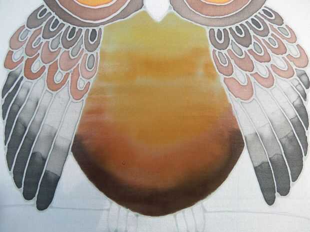La sal de mar gruesa se aplicó en la zona de la barriga después de la pintura y a la izquierda para hacer los patrones plumosos.