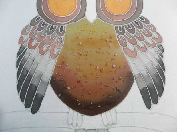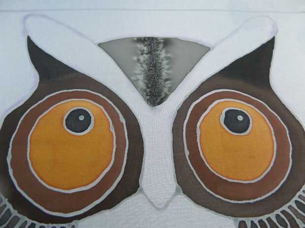La parte superior de la cabeza de la lechuza tuvo un gris claro con una raya negra de concentrado y sal fina en una línea.