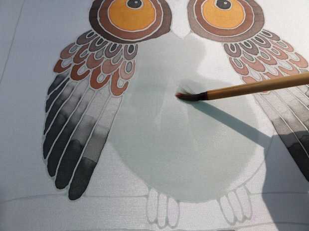En primer lugar he pintado agua en la zona de la barriga como que quería mezclar colores y agua esto ayuda a pasar. Luego apliqué una mezcla de concentrado de color negro y canela en la parte inferior de la barriga, trabajando hacia arriba con tonos más claros de la canela, que llegó a ser más claro con pequeñas cantidades de botón de oro para las áreas más claras en el cuello.