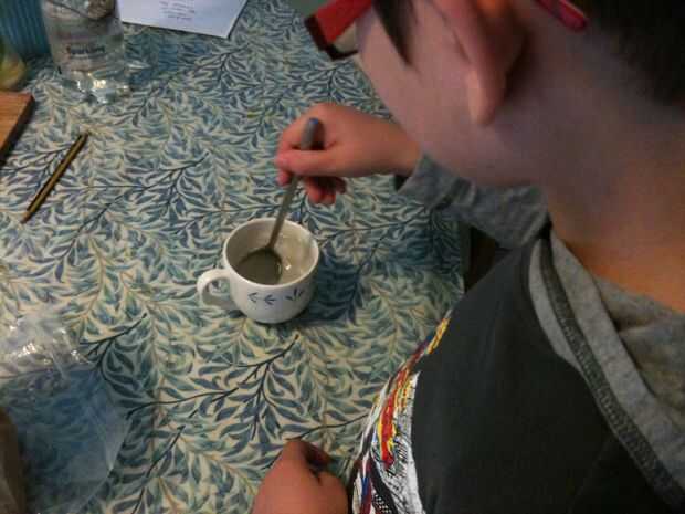 Tomar una taza, agregue agua tibia y una cucharada de bórax. Revolver.