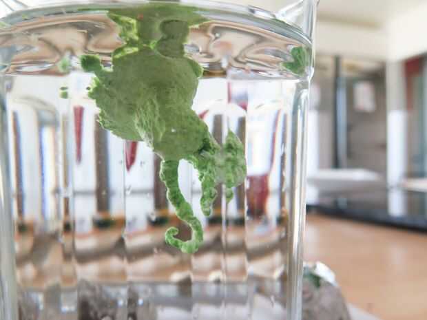 Desde una altura más arriba, voltee el bote en el agua, tratando de goteo en un solo lugar. Pronto se solidifica y hacen algunos locos increíbles formas boogery que son realmente similares a algunos