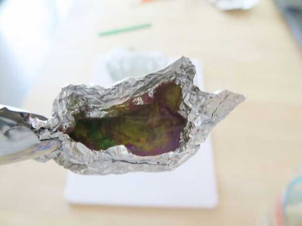 Tomar tu barco de papel de aluminio y asegúrese de que no hay agujeros. Desea que las paredes a ser un poco altos como el barco se va a conseguir golpeado alrededor. Llevar una olla de agua a cerca de ebullición y poner el barco de papel con tus lápices de colores dentro. Espere unos 3-5 minutos para tus crayones a líquido (magma!) y luego retire el barco con un par de pinzas o guantes.