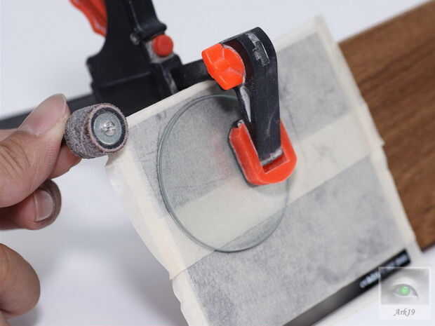 Usando una banda de lijar Dremel, arena lejos el plástico restante del filtro de Cokin lejos.