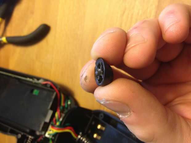 Aislé los cables desde el viejo botón/PCB con tubo retráctil para que no estropear las cosas más adelante. También tuve que modificar el botón de sí mismo, porque los viejos eran de otro modelo que el nuevo proceso de dos pasos. Puedes ver en la foto que esta tiene un botón pequeño, que es lo que yo lo pegue al botón para que tenga contacto con el nuevo botón de dos etapas.