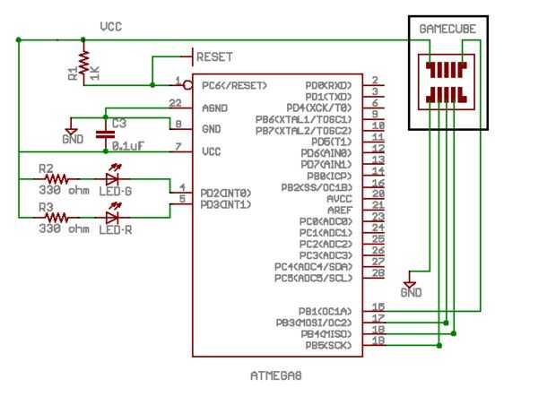 mod-chip para indicar si el chip se comunica con el puerto serial del servicio de la unidad de disco correctamente. Verde significa que funciona correctamente; rojo significa que hay un error. Puede extraerlo del circuito, junto con las resistencias en serie con ellos cuando el chip se instala en el GameCube, o puede dejarse en y discretamente ubicados en la parte posterior de la GameCube.