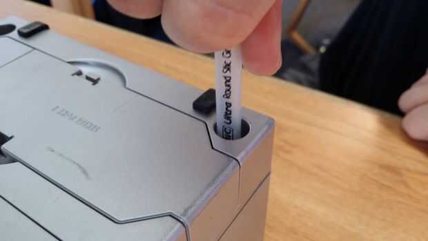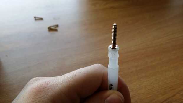 Si un destornillador juego bit no está disponible, utilice un bolígrafo Bic tirando aparte, retirar la punta de tinta desde la punta de plástico, y sustituir la punta de plástico. Luego derretir la punta del plástico con el encendedor. No quemar el plástico ni deje que se encienda. Una vez que la punta de plástico es suave, Inserte firmemente en el orificio del tornillo contra la cabeza del tornillo. Permita que se enfríe antes de retirarlo. Después de dejar que el plástico se enfríe completamente, la punta será sólida. Debe tener la impresión de la cabeza del tornillo y serán capaces de quitar los tornillos. Si llega a ser despojado al atornillar/destornillar, volver a derretir el plástico, repitiendo este paso.