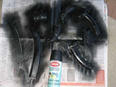 5. mover a un pozo ventilado área y aerosol (o cepillo) todo negro. Dar a las piezas por lo menos dos capas para asegurar la adecuada cobertura y profundidad adecuada de la pintura para el lijado adicional.