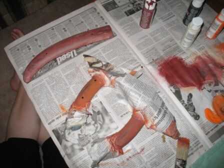 9. vuelta al grano de madera. Si su pintura anaranjada es seco en las zonas de madera del grano, seguir adelante y añadir beige. Al igual que la naranja, no te preocupes si es rayado. Se fortalecerán todos los colores más y más nuevo, así que finalmente las zonas de madera se completamente cubrir la capa de base negra, pero por ahora pintar sólo ligeramente sobre la naranja. Póngalo a un lado para secar y seguir haciendo la filigrana piezas 'oro' mientras esperas.