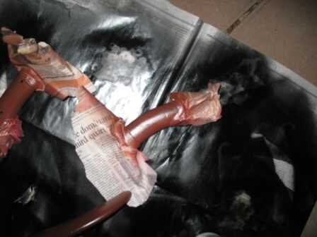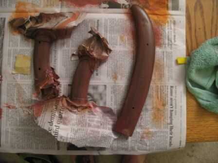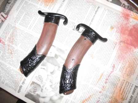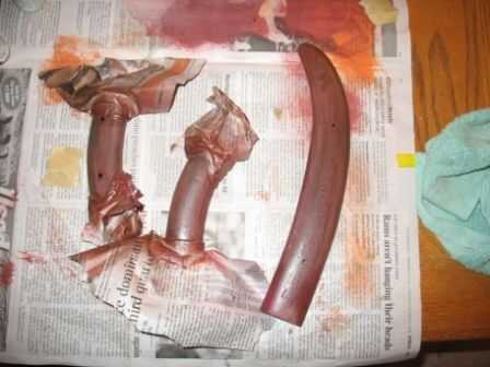 12. usando el papel de grano fino (220) arena, Lije ligeramente las zonas de madera. Ir más difícil en algunas áreas luego otros, exponiendo el acrílico te construido siempre-tan-pacientemente antes de pigmentos. Una vez que tenga un poco de madera del grano comienza a emerger, limpie el polvo y tomar las piezas fuera. Usar tu técnica de bruma para añadir más rojo y marrón una vez más, esta vez muy ligeramente. El lijado inicial revela el colorante y madera de grano, el final de la bruma le da ese aspecto interno muy gastado. El segundo de la bruma es su final y la capa superior de color así que judicoius sobre su aplicación. Si usted encuentra que usted ha aplicado demasiada pintura, simplemente la arena y la niebla otra vez hasta lograr la apariencia que desea.