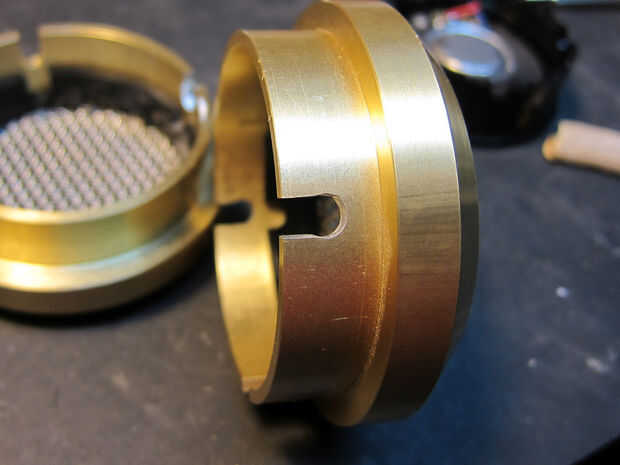Una vez que haya terminado su y ajuste de los ejes de Sennheiser en lugar para asegurarse de que cabe. No te preocupes si no coinciden los ejes de ambos para encajar en la lata a la vez. Se cubrirán en el siguiente paso. Nosotros sólo quiere estar seguro de que los ejes serán capaces de adaptarse fácilmente y no se unen. Si lo hace le puede necesita para limar más o ampliar el agujero sólo un poco. Es imperativo que todas las superficies son lisas.