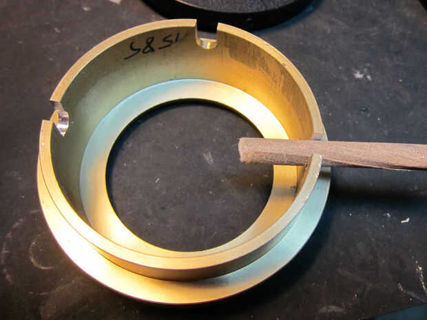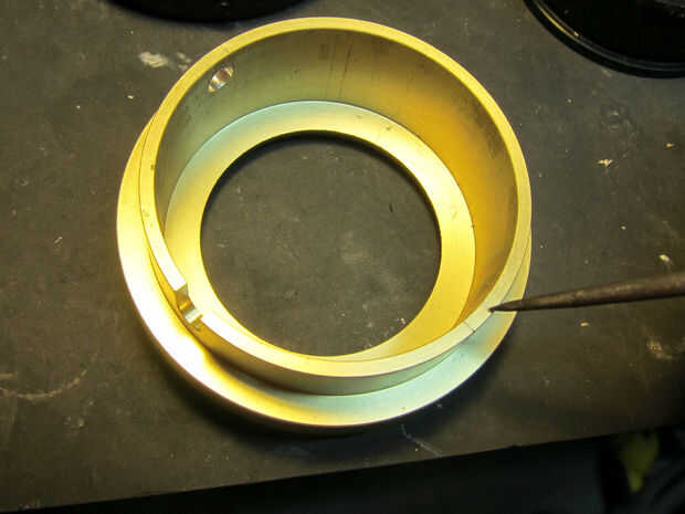 Utilice un archivo o una herramienta dremel que he utilizado. Usted debe limpiarla con un papel de lija. grano 220 funciona bien. Un archivo tomará algún tiempo. Tal vez podría usar una sierra para metales luego archivo liso. No queremos las rebabas para cortar en el eje de plástico que se ajuste en allí.