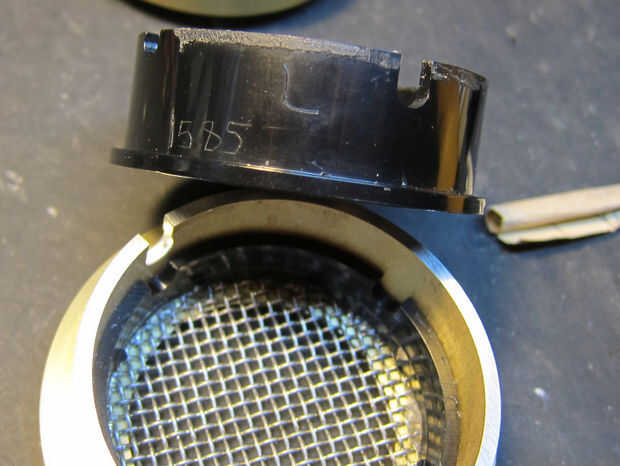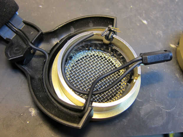 El enchufe estéreo necesita encajar en la ranura original que los cables de Grado vinieron hacia fuera en la lata de aluminio izquierda. Realmente no importa que uno usa derecha o izquierda porque son idénticas. Sólo sé que uno que utiliza se convertirá en el lado izquierdo. I utilizar la dremel para quitar algunos de plástico y luego lo terminó para arriba con la cuchilla Xacto. No retire demasiado. Desea que ajuste cómodamente y no suelto.