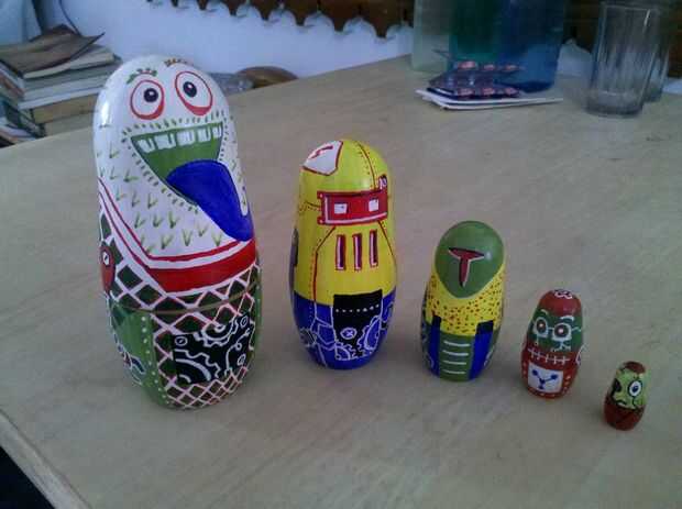 el segundo set que hice es más colorido... Utilicé pinturas acrílicas. utiliza blanco llano como una capa de base... y luego trabajó en los otros colores.