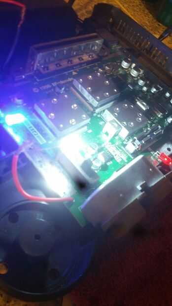 Luego soldar un trozo recortado de pierna de LED sobre el carril de tierra, darme un lugar común a tierra mis lámparas azules, siendo su fuente de the12v de rieles en ambos lados de la Junta. Puse dos en cada lado cerca de los orificios de ventilación, dos debajo de la ranura de cartucho y detrás de cada puerto de controlador. Para hacer luz fundido más uniformemente, apliqué una capa de pegamento caliente alrededor de cada foco difuso y asegúrelo en su lugar.