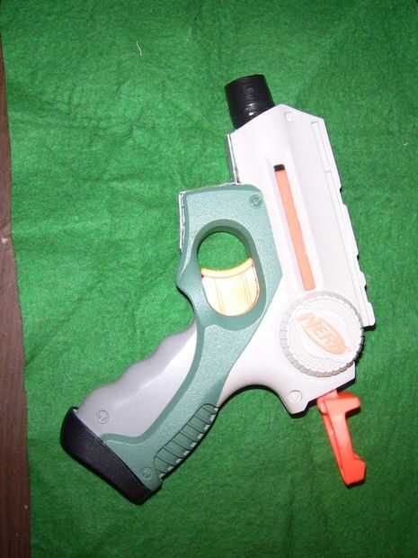 pistola Nerf A es, simplemente, una pistola de juguete de plástico que dispara espuma dardos. Sin embargo, el arma no es tan fuerte lo suficiente como nos gustaría, y fuera de caja, realiza en ninguna parte cerca de su capacidad. Hasbro ha instalado