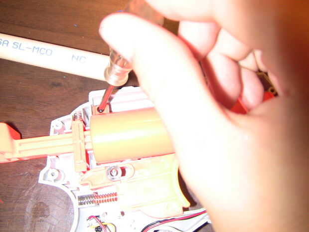 esta es la manera más fácil de mod este arma.  Primer paso como siempre, lo desarma.  Un montón de tornillos, seguimiento de les, no se olvide del metal de la broca en el mango.Paso 1: El barril Interior del cañón se encuentra un post de barril.  Obt