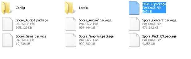 Instalar mods de espora de generación actual es bastante simple, simplemente copie el archivo .package (por ejemplo, SMA1.0.package) en el directorio de datos de las esporas. El directorio de datos normalmente se encuentra en: