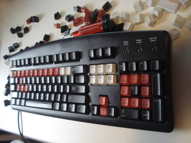si su lugar de trabajo de oficina es como el mío, tienes un montón de accesorios, equipo extra, incluyendo teclados. Y si trabajas para una empresa grande, todos lostecladosson probablemente idénticos.Trabajo para esa gran empresa va a pagar el 1 de