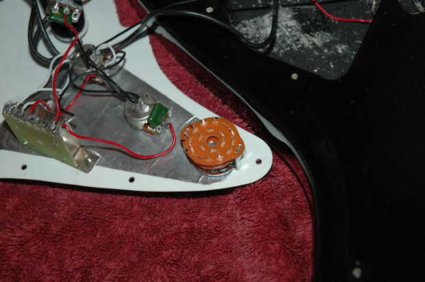 hay una pestaña en el interruptor giratorio que debe pasar a través de un agujero en la placa de scratch para detenerla girar. Este interruptor es más grande que la original por lo que la ficha estaba en el lugar equivocado. No siento confianza para perforar el scratchplate sin una prensa del taladro para que doblar la pestaña abajo de plano. El interruptor funciona bien hasta ahora.