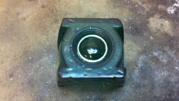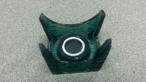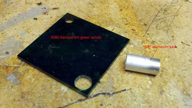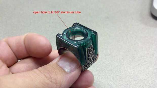 El agujero en la parte superior de plástico verde del anillo debe ser ampliado para que un tubo de 3/8" puede se ajustaron en. La parte inferior de esta pieza también tiene que ser acortada por una pequeña cantidad para dejar espacio para el inserto de LED.