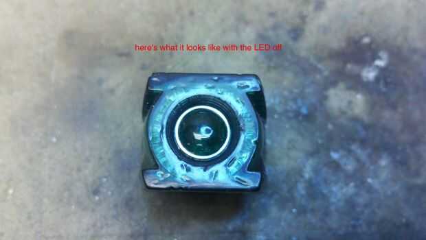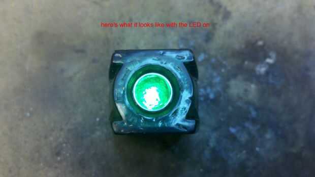 Nota que no hay un interruptor (y no hay espacio para uno - probé) - si la batería está en entonces el anillo es en. Doblando el alambre del contacto he sido capaz de conseguir el anillo para encender cuando lo estoy usando pero es mucho de ensayo y error y no terriblemente confiable. En cuanto a tiempo de ejecución he ejecutar uno de ellos de 36 horas recta-en ese momento era notable oscurecimiento del LED. En un cuarto oscuro esta cosa es muy brillante.