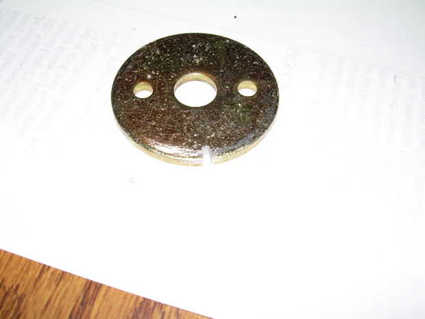 Para quitar el rotor principal solía un par de pinzas de fijación sostenga el eje del metal cerca del engranaje. Luego deslizó una arandela (ver foto) con una ranura pequeña en el mismo entre las pinzas y el rotor. Ahora he utilizado un destornillador de punta plana entre las pinzas y la lavadora para Presione el rotor del eje. Puede que necesite volver a colocar los alicates como el rotor se mueve al extremo del eje.