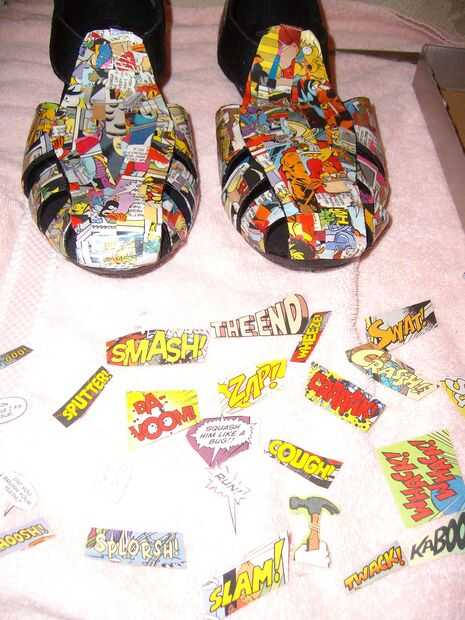 Una vez los zapatos están completamente cubiertos con una cubierta de la base de los cómics, sacar esas imágenes, palabras, burbujas de pensamiento/discurso, que hizo un llamamiento a usted!