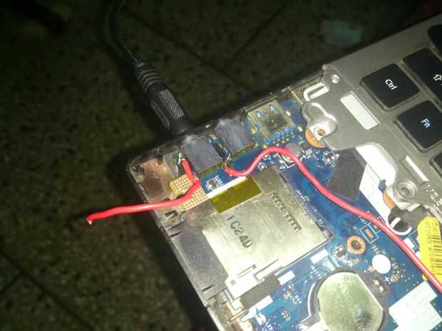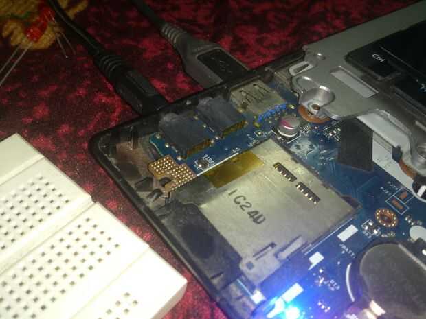 Lo siguiente es averiguar en el puerto USB cuyo abastecimiento va a tomar. Cuidadosamente, muy cuidadosamente de la soldadura de uno rojo de + ve y un cable negro para-ve en el puerto USB sin dañar otras IC, resistor, condensador a bordo. Si lo tiene, hasta este paso, hecho con cuidado y bastante fuerte, bien acariciar su espalda porque estas dos cosas son la parte más difícil de este instructable.