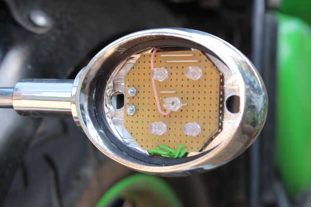 por lo que después de investigar las leyes para hacer mi bicicleta motorizada legal en California y el envío de la placa de la licencia, he decidido trabajar en la luz del freno mientras espero la placa.Después de un par de días de mirar diseños de o