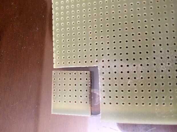 Sólo cortar un trozo de perfboard con un diente de sierra y lijar los bordes para que sea suave.
