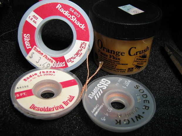 Algunos desoldering braid es bueno tener, demasiado. Es barato y dura mucho tiempo, así que tiro algo en tu orden de Digi-Key. (Hago muchas soldaduras, y no puedo recordar la última vez que llegué al final de un carrete de trenzado).
