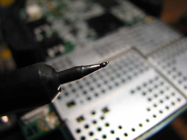 Sujete al conector con un palillo de dientes, palito o lo que sea. Tocar la soldadura fundida a la intersección del gato y el cojín de una tierra. Si hay flujo en el cojín, la soldadura debe fluir y hacer la conexión. Retire la plancha y comprobar su trabajo.